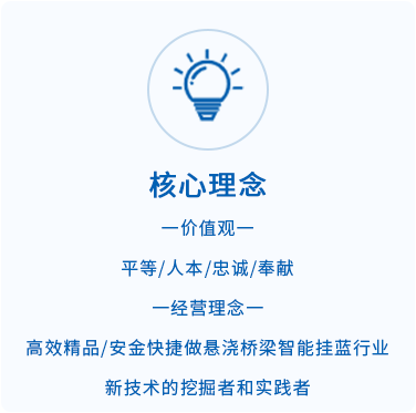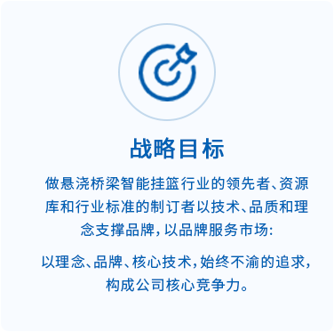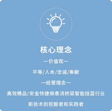 公司以“智能挂篮,品质先行”为理念,以打造桥梁装备“安全、智能、快捷、高效、精品”为目标。主要生产轻、中、重型智能挂篮,智能箱式爬模,托架等桥梁设备。目前拥有自主知识产权的专利15项,正在公示的专利10项,其中,挂篮的“快状快拆”专利技术相对传统挂篮安装施工效率提高80%以上。公司长期与中铁、中交、江西交工集团等大型央企合作,完成桥梁挂篮施工50余座,在云南、四川、天津、杭州、河南、山东、福建、广东、广西、湖南、贵州、江西等十几个省市有业绩。
